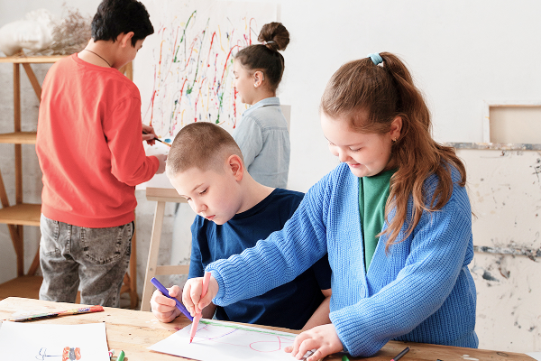 Bright and inspiring space designed to cultivate creativity, from painting and sculpture to digital arts for the children artistic quirk.